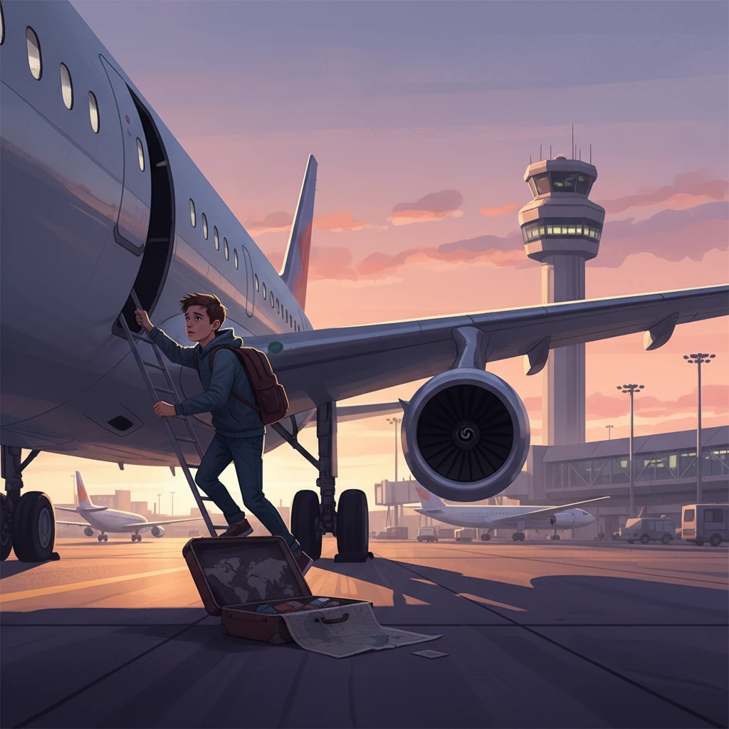 לִפְנֵי כַּמָּה יָמִים, הָיָה יֶלֶד בִּשְׂדֵה הַתְּעוּפָה. הוּא מְאוֹד רָצָה לַעֲלוֹת עַל מָטוֹס. הוּא דִּמְיֵן שֶׁהוּא יוֹצֵא לְהַרְפַּתְקָה גְּדוֹלָה. אֲבָל הוּא עָשָׂה מַשֶּׁהוּ שֶׁאָסוּר לַעֲשׂוֹת. הוּא נִסָּה לְהִכָּנֵס לַמָּטוֹס בְּלִי כַּרְטִיס טִיסָה. כַּרְטִיס טִיסָה הוּא כְּמוֹ הַזְמָנָה לִמְסִבַּת יֹום הֻלֶּדֶת. אִי אֶפְשָׁר לָבוֹא לַמְּסִבָּה בְּלִי הַזְמָנָה. כָּכָה אִי אֶפְשָׁר לַעֲלוֹת לַמָּטוֹס בְּלִי כַּרְטִיס. זֶה חֹוק חָשׁוּב שֶׁשּׁוֹמֵר עַל כֻּלָּם. הַיֶּלֶד הִתְהַלֵּךְ לְבַדּוֹ בַּמָּקוֹם הֶהוֹמֶה. הוּא קִוָּה שֶׁאַף אֶחָד לֹא יָשִׂים לֵב.