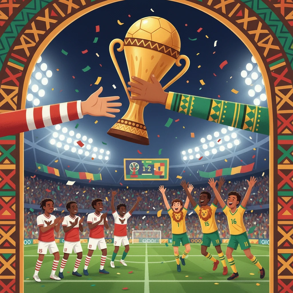 הַמְּבֻגָּרִים הָאֵלֶּה יָשְׁבוּ וְחָשְׁבוּ. הֵם קָרְאוּ אֶת סֵפֶר הַחֻקִּים הַגָּדוֹל שֶׁל הַכַּדּוּרֶגֶל. בַּסּוֹף, הֵם הֶחְלִיטוּ הַחְלָטָה מַפְתִּיעָה. הֵם אָמְרוּ שֶׁמָּרוֹקוֹ צָדְקָה. הֵם לָקְחוּ אֶת הַגָּבִיעַ מִסֶּנֶגָל וְנָתְנוּ אוֹתוֹ לְמָרוֹקוֹ. הַשַּׂחְקָנִים מִסֶּנֶגָל הָיוּ עֲצוּבִים מְאוֹד. הֵם הִרְגִּישׁוּ שֶׁהֵם נִצְּחוּ בַּמִּגְרָשׁ. הֵם רָצוּ, הִזִּיעוּ וְהִכְנִיסוּ גּוֹל. וְעַכְשָׁיו, הַגָּבִיעַ כְּבָר לֹא שֶׁלָּהֶם.