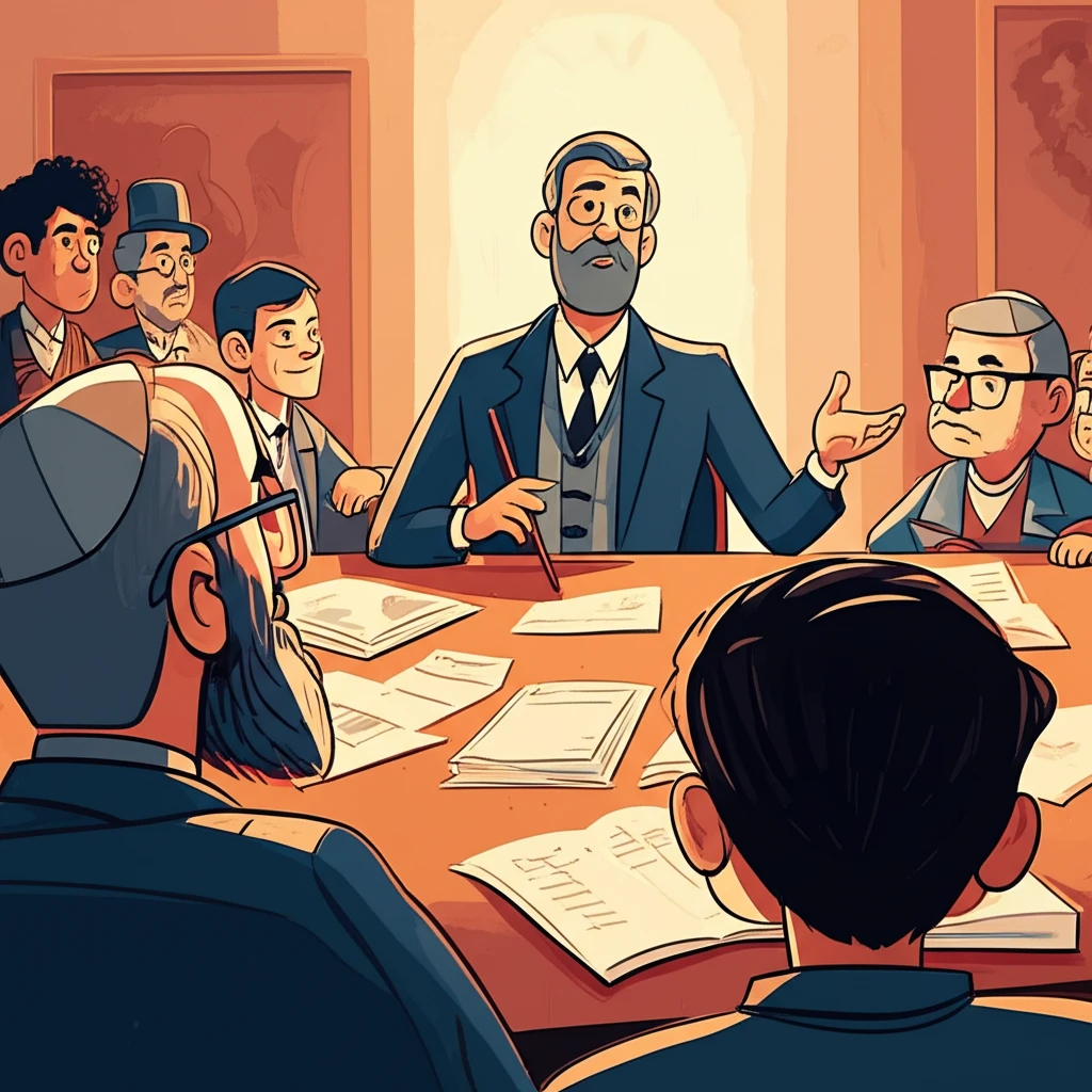 רֹאשׁ הַמֶּמְשָׁלָה, שֶׁשְּׁמוֹ בִּנְיָמִין נְתַנְיָהוּ, קָרָא לְכַמָּה מֵהָעוֹזְרִים הֲכִי חֲשׁוּבִים שֶׁלּוֹ לִפְגִישָׁה. הֵם יָשְׁבוּ בְּחֶדֶר, בְּדִיּוּק כְּמוֹ שֶׁהוֹרִים יוֹשְׁבִים בַּמִּטְבָּח לְדַבֵּר אַחֲרֵי שֶׁהַיְּלָדִים הוֹלְכִים לִישֹׁן. הֵם דָּנוּ בַּשְּׁאֵלָה הַגְּדוֹלָה. אֶחָד הַשַּׂרִים, שֶׁשְּׁמוֹ רוֹן דֶּרְמֶר, חָשַׁב שֶׁצָּרִיךְ לְהַחְלִיט מַהֵר. שַׂרִים אֲחֵרִים הִצִּיעוּ רַעֲיוֹנוֹת שׁוֹנִים. הַדָּבָר הֲכִי חָשׁוּב הוּא שֶׁהֵם מַקְשִׁיבִים אֶחָד לַשֵּׁנִי. הֵם מְנַסִּים לִמְצֹא דֶּרֶךְ שֶׁתַּתְאִים לְכֻלָּם.