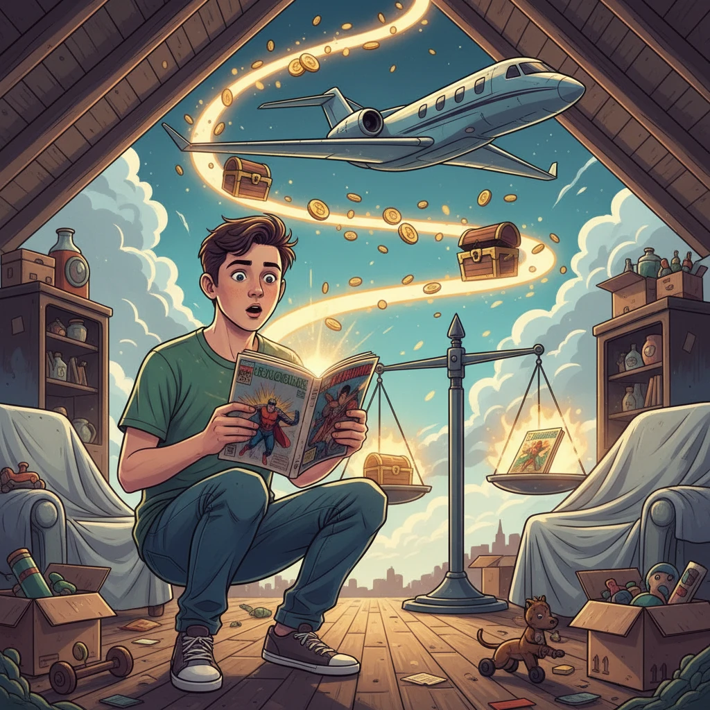 לַמְרוֹת שֶׁהַקּוֹמִיקְס שָׁכַב בַּעֲלִיַּת הַגַּג, הוּא נִרְאָה כִּמְעַט חָדָשׁ. הַצְּבָעִים הָיוּ חַיִּים וְהַדַּפִּים לֹא נִקְרְעוּ. זֶה כְּמוֹ לִשְׁמֹר עַל צִיּוּר יָפֶה בְּתוֹךְ קֻפְסָה מְיֻחֶדֶת. הָאִמָּא שֶׁלָּהֶם שָׁמְרָה עָלָיו מְצֻיָּן.