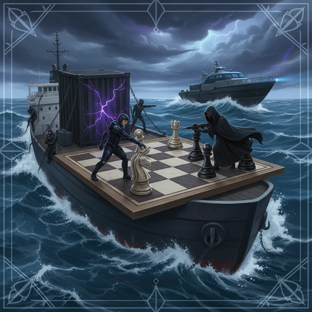 בְּמֶרְכַּז הָאוֹקְיָנוֹס הַהוֹדִי, שֶׁהוּא יָם עֲנָקִי עִם מַיִם כְּחֻלִּים וְעַזִּים, שָׁטָה לָהּ סְפִינָה גְּדוֹלָה. הִיא נָשְׂאָה הֲמוֹן אֲרָגזִים, כְּמוֹ מַשָּׂאִית עֲנָקִית שֶׁשָּׁטָה עַל הַמַּיִם. פִּתְאוֹם, הִגִּיעוּ חַיָּלִים מְיֻחָדִים מֵאַרְצוֹת הַבְּרִית. הֵם הַשּׁוֹמְרִים שֶׁל הַיָּם. הַתַּפְקִיד שֶׁלָּהֶם הוּא כְּמוֹ שֶׁל מַצִּיל בַּבְּרֵכָה. הֵם דּוֹאֲגִים שֶׁהַכֹּל יִהְיֶה בָּטוּחַ וְשֶׁכֻּלָּם יִשְׁמְרוּ עַל הַחֻקִּים.