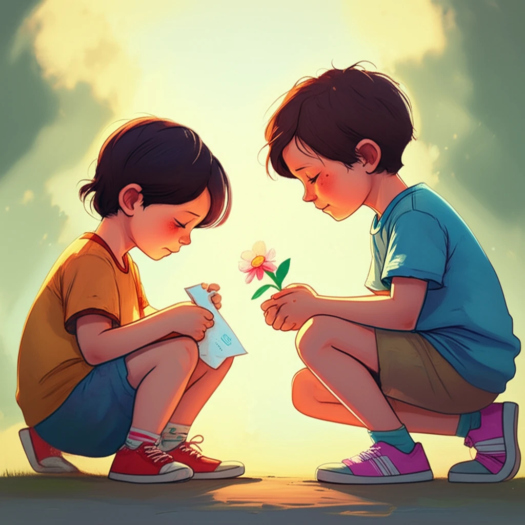 דַּמְיְנוּ שֶׁבְּטָעוּת הָרַסְתֶּם מִגְדָּל קֻבִּיּוֹת שֶׁל חָבֵר. הֶחָבֵר שֶׁלָּכֶם עָצוּב מְאוֹד. הַלֵּב שֶׁלּוֹ כּוֹאֵב קְצָת. גַּם הַלֵּב שֶׁלָּכֶם מַרְגִּישׁ לֹא נָעִים. כְּשֶׁאוֹמְרִים "אֲנִי מִצְטַעֵר", זֶה כְּמוֹ דֶּבֶק קֶסֶם. זֶה מַתְחִיל לְתַקֵּן אֶת הָרֶגֶשׁ הֶעָצוּב. זֶה מַרְאֶה לֶחָבֵר שֶׁאִכְפַּת לָכֶם.
