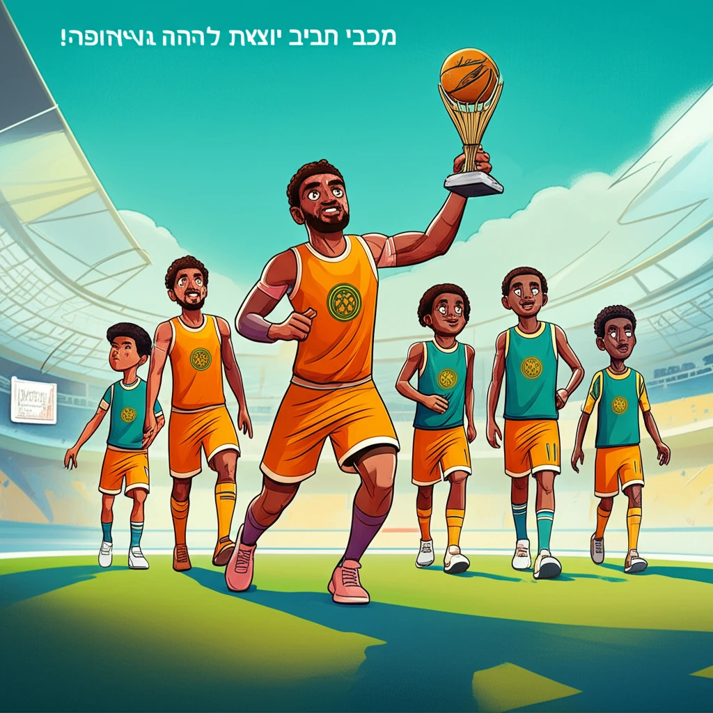 הַקְּבוּצָה שֶׁלָּנוּ, מַכַּבִּי תֵּל אָבִיב, יוֹצֵאת לְמַסָּע מְיֻחָד. זֶה מַסָּע שֶׁל כַּדּוּרֶגֶל בְּמָקוֹם רָחוֹק שֶׁנִּקְרָא אֵירוֹפָּה. הַשַּׂחְקָנִים בַּצֶּבַע צָהֹב וְכָחֹל מוּכָנִים לְאֶתְגָּר חָדָשׁ. הֵם רוֹצִים לְשַׂחֵק הֲכִי טוֹב שֶׁהֵם יְכוֹלִים.