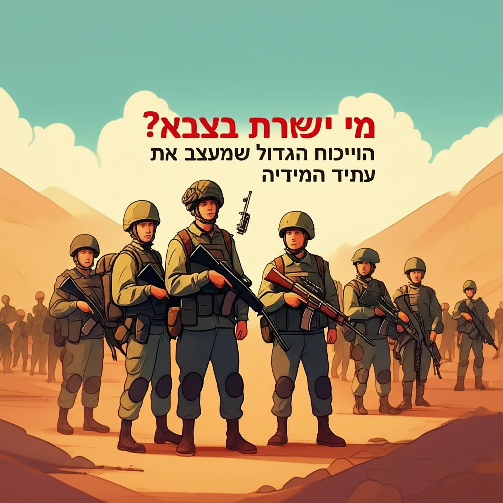 בַּיָּמִים הָאַחֲרוֹנִים, חַבְרֵי הַכְּנֶסֶת מְדַבְּרִים הַרְבֵּה עַל חֹק חָדָשׁ. הַחֹק קָשׁוּר לְצָהָ"ל. צָהָ"ל זֶה הַשֵּׁם שֶׁל הַצָּבָא שֶׁלָּנוּ. הַחַיָּלִים וְהַחַיָּלוֹת בְּצָהָ"ל הֵם כְּמוֹ גִּבּוֹרֵי-עָל. הֵם שׁוֹמְרִים עָלֵינוּ וְעַל הַמְּדִינָה שֶׁלָּנוּ. הַחֹק הֶחָדָשׁ צָרִיךְ לְהַחְלִיט אֵיךְ הֲכִי נָכוֹן לְחַזֵּק אֶת הַצָּבָא.