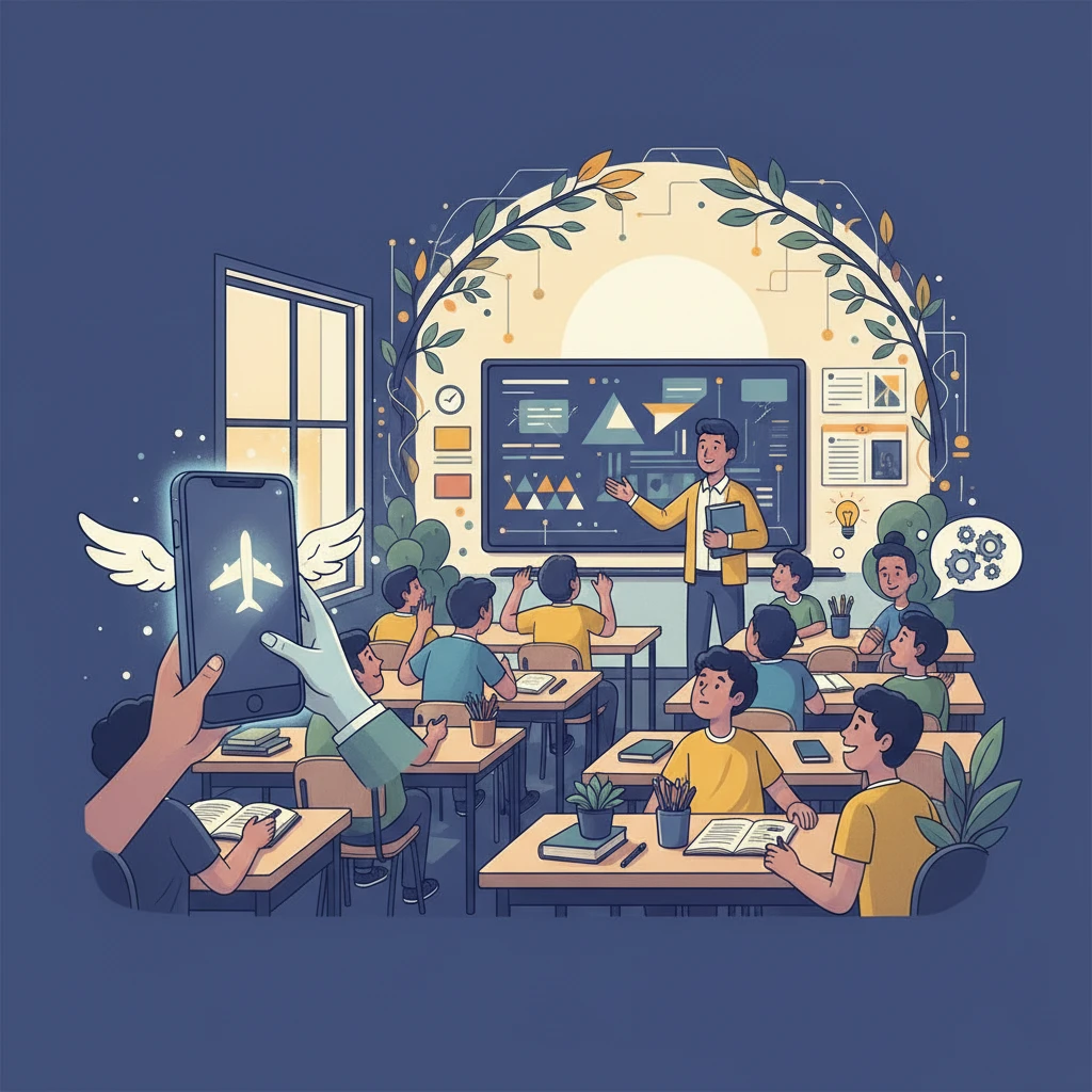 לִפְעָמִים, הַמּוֹרָה תַּגִּיד שֶׁאֶפְשָׁר לְהוֹצִיא אֶת הַטֶּלֶפוֹן. זֶה יִהְיֶה רַק לְצֹרֶךְ מְשִׂימָה מְיֻחֶדֶת. לְמָשָׁל, לְחַפֵּשׂ תְּמוּנָה שֶׁל חַיָּה מְעַנְיֶנֶת. אוֹ לִשְׁמֹעַ שִׁיר שֶׁקָּשׁוּר לַשִּׁעוּר. הַטֶּלֶפוֹן יִהְיֶה כְּלִי עֲזָרָה, כְּמוֹ סַרְגֵּל אוֹ מִסְפָּרַיִם. אֲבָל בְּרֹב הַזְּמַן, נִלְמַד מֵהַסְּפָרִים וּמֵהַמּוֹרָה. הַדָּבָר הֲכִי חָשׁוּב בְּבֵית הַסֵּפֶר הוּא לְהַקְשִׁיב, לִשְׁאֹל שְׁאֵלוֹת וְלִלְמֹד דְּבָרִים חֲדָשִׁים וּמְרַתְּקִים.